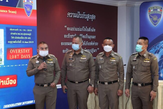 สำนักงานตรวจคนเข้าเมือง โดย พล.ต.ท.ภาคภูมิภิภัทฒ์ สัจจพันธุ์ ผบช.สตม. มอบหมายให้ พล.ต.ต.อาชยน ไกรทอง รอง ผบช.สตม., พล.ต.ต.ปิติ นิธินนทเศรษฐ์ ผบก.ตม.1, พ.ต.อ.ณรงค์เวทย์ โอนสูงเนิน รอง ผบก.ตม.1 และ พ.ต.อ.ระพีพัฒน์ อุตสาหะ ผกก.สส.บก.ตม.1 พร้อมชุดสืบสวนฯ แถลงข่าวการจับกุมคนร้ายมีรายละเอียด ดังนี้