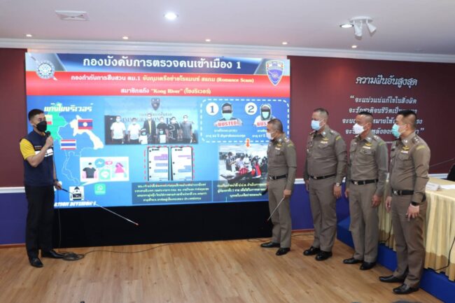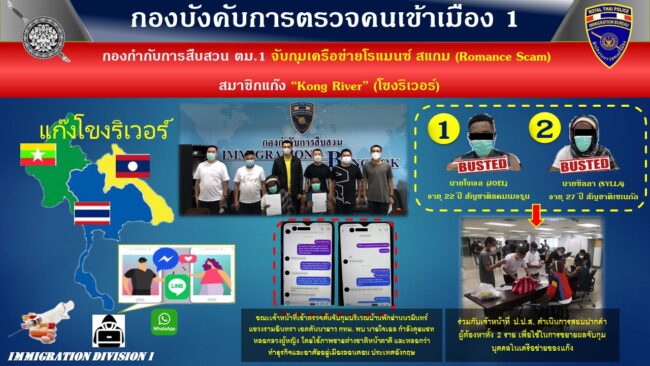 กองกำกับการสืบสวน ตม.1 จับกุมเครือข่ายโรแมนซ์ สแกม สมาชิกแก๊ง “Kong River” (โขงริเวอร์) :
