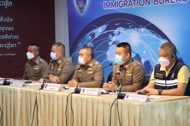 สำนักงานตรวจคนเข้าเมือง โดย พล.ต.ท.ภาคภูมิภิภัทฒ์ สัจจพันธุ์ ผบช.สตม. มอบหมายให้ พล.ต.ต.อาชยน ไกรทอง รอง ผบช.สตม., พล.ต.ต.ปิติ นิธินนทเศรษฐ์ ผบก.ตม.1, พ.ต.อ.ณรงค์เวทย์ โอนสูงเนิน รอง ผบก.ตม.1 และ พ.ต.อ.ระพีพัฒน์ อุตสาหะ ผกก.สส.บก.ตม.1 พร้อมชุดสืบสวนฯ แถลงข่าวการจับกุมคนร้ายมีรายละเอียด ดังนี้