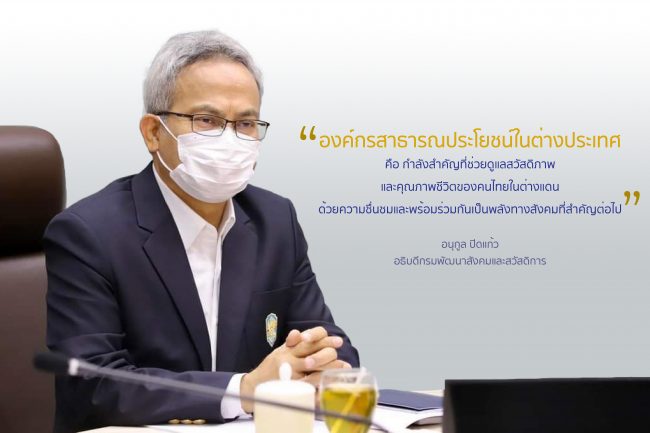 กระทรวงการพัฒนาสังคมและความมั่นคงของมนุษย์ (พม.) โดย นายอนุกูล ปีดแก้ว อธิบดีกรมพัฒนาสังคมและสวัสดิการ กล่าวว่า เมื่อวันที่ 25-26 พฤษภาคม 2565 ที่ผ่านมา กรมพัฒนาสังคมและสวัสดิการ ได้เปิดเวทีพบปะองค์กรสาธารณประโยชน์ในต่างประเทศ ผ่านสื่ออิเล็กทรอนิกส์ (ZOOM Webinar) เพื่อเป็นเวทีพบปะพูดคุยกับองค์กรสาธารณประโยชน์ในต่างประเทศ และสรุปผลการติดตามการดำเนินการขององค์กรฯ โดยเฉพาะอย่างยิ่ง การชี้แจงทำความเข้าใจเกี่ยวกับกิจกรรมการประเมินคุณภาพองค์กรสาธารณะประโยชน์ ซึ่งจะนำไปสู่การจัดทำแผนส่งเสริมและพัฒนาศักยภาพด้านการบริหารและการจัดบริการขององค์กรฯ โดยมีผู้แทนองค์กรธารณประโยชน์ในต่างประเทศ รวมถึงผู้แทนกลุ่ม ชมรมอื่น ๆ ที่สนใจเข้ารับการรับรองเป็นองค์กรสาธารณประโยชน์ฯ จาก สมาพันธรัฐสวิส เยอรมนี ฝรั่งเศส สเปน นอร์เวย์ อิตาลี สหราชอาณาจักร และเขตบริหารพิเศษฮ่องกง จำนวนทั้งสิ้น 56 คน เข้าร่วมประชุมฯ