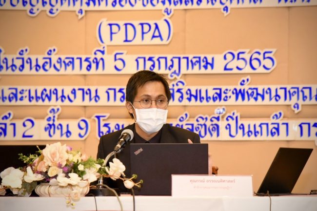 นางสาวสราญภัทร กล่าวว่า จากพระราชบัญญัติคุ้มครองข้อมูลส่วนบุคคล พ.ศ. 2562 หรือ PDPA ที่ย่อมาจาก Personal Data Protection Act มีผลใช้บังคับเมื่อ 1 มิถุนายน 2565 ที่ส่งผลกระทบต่อผู้ปฏิบัติงาน โดยเฉพาะอย่างยิ่งหน่วยงานภาครัฐที่ให้บริการประชาชน ประกอบกับกรมส่งเสริมและพัฒนาคุณภาพชีวิตคนพิการ (พก.) เป็นหน่วยที่มีฐานข้อมูลคนพิการ และแผนปฏิบัติราชการ พก. ให้ความสำคัญกับยุทธศาสตร์การพัฒนาศักยภาพบุคลากรในองค์กร จึงได้จัดการอบรมให้ความรู้กฎหมายและแนวทางปฏิบัติตามพระราชบัญญัติคุ้มครองข้อมูลส่วนบุคคล พ.ศ. 2562” (PDPA) ในครั้งนี้ โดยมีวัตถุประสงค์เพื่อพัฒนาศักยภาพให้บุคลากรของ พก. มีความรู้ ความเข้าใจที่ถูกต้องเกี่ยวกับหลักการและแนวทางปฏิบัติตามพระราชบัญญัติคุ้มครองข้อมูลส่วนบุคคล พ.ศ. 2562” (PDPA) รวมทั้ง ข้อพึงระวังและวิธีการที่เหมาะสมที่ไม่ละเมิดสิทธิส่วนบุคคลดังกล่าว และสามารถนำไปใช้ในการปฏิบัติงานและบริหารจัดการข้อมูลได้อย่างถูกต้อง โดย พก. มีข้อมูลบุคคลที่สามารถจำแนกออกเป็น 3 กลุ่มใหญ่ ได้แก่