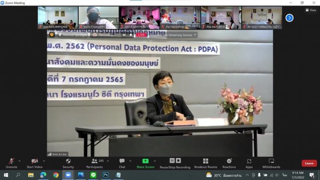 วันที่ 7 กรกฎาคม 2565 เวลา 09.00 น. นางสาวมนิดา ลิ่มนิจสรกุล ผู้ช่วยปลัดกระทรวงการพัฒนาสังคมและความมั่นคงของมนุษย์ (ผช.ปลัด พม.) เป็นประธานเปิดโครงการอบรมเตรียมความพร้อมเพื่อการปฏิบัติตามกฎหมาย พระราชบัญญัติคุ้มครองข้อมูลส่วนบุคคล พ.ศ. 2562 (Personal Data Protection Act : PDPA) ของกระทรวงการพัฒนาสังคมและความมั่นคงของมนุษย์ (พม.) เพื่อสร้างความรู้ ความเข้าใจด้านการรักษาความมั่นคงปลอดภัยของข้อมูลส่วนบุคคลให้กับบุคลากรของกระทรวง พม. ในการปฏิบัติงานภายใต้พระราชบัญญัติคุ้มครองข้อมูลส่วนบุคคล พ.ศ. 2562 ตลอดจนทักษะที่จำเป็นในการดำเนินงานให้สอดคล้องกับพระราชบัญญัติดังกล่าว