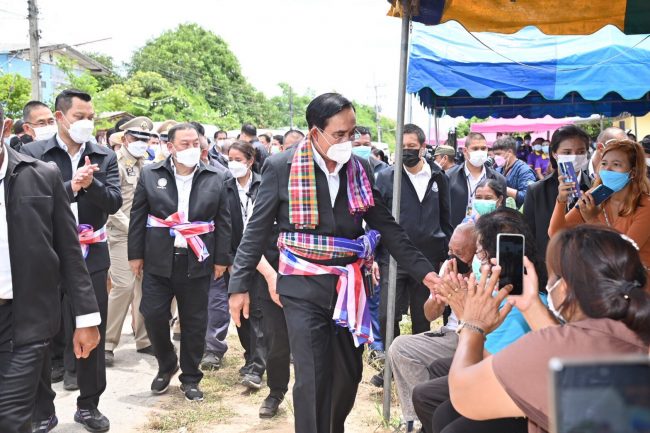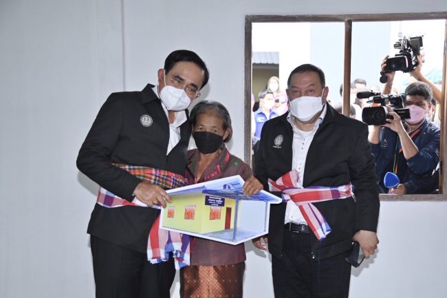 วันที่ 7 กรกฎาคม 2565 เวลา 12.00 น. พลเอก ประยุทธ์ จันทร์โอชา นายกรัฐมนตรีและรัฐมนตรีว่าการกระทรวงกลาโหม พร้อมด้วยนายจุติ ไกรฤกษ์ รัฐมนตรีว่าการกระทรวงการพัฒนาสังคมและความมั่นคงของมนุษย์ (รมว.พม.) และคณะ ลงพื้นที่จังหวัดกำแพงเพชร ณ ตำบลวังบัว อำเภอคลองขลุง เพื่อติดตามความก้าวหน้าการดำเนินงานการขจัดความยากจนและพัฒนาทุกช่วงวัยอย่างยั่งยืน ตามหลักปรัชญาเศรษฐกิจพอเพียง (ศจพ.) พร้อมทั้งเยี่ยมชมบูธกระทรวง พม. นำเสนอการดำเนินงานพัฒนาคุณภาพชีวิตกลุ่มเปราะบางจังหวัดกำแพงเพชร ในมิติที่ 5 การเข้าถึงบริการของรัฐ สำหรับผู้สูงอายุและคนพิการ ได้แก่ เบี้ยยังชีพผู้สูงอายุ เบี้ยความพิการ เงินสงเคราะห์ กายอุปกรณ์ เครื่องอุปโภคบริโภคที่จำเป็น และการให้คำปรึกษาแนะนำการเข้าถึงสิทธิ สวัสดิการสังคม เป็นต้น อีกทั้งได้มอบบ้านหลังใหม่ให้กับผู้สูงอายุหญิง ซึ่งได้รับเงินสนับสนุน จำนวน 120,000 บาท จากเหล่ากาชาดจังหวัดกำแพงเพชร และมอบเครื่องอุปโภคบริโภคที่จำเป็นจากกระทรวง พม.