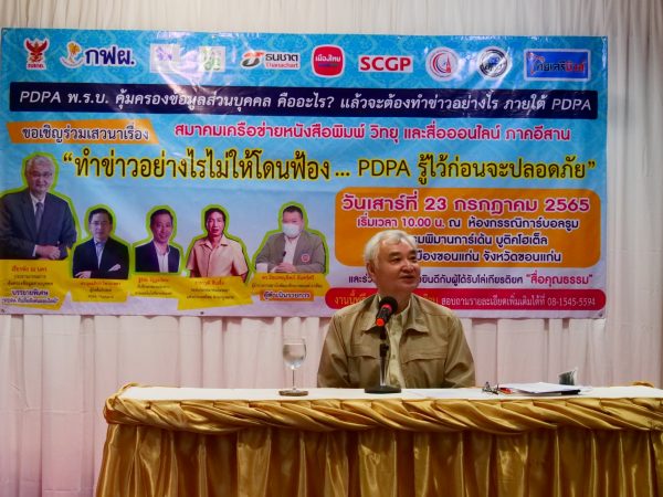 สมาคมเครือข่ายหนังสือพิมพ์ วิทยุ และสื่อออนไลน์ภาคอีสาน จึงได้จัดทำโครงการพัฒนาศักยภาพสื่อท้องถิ่น ในประเด็น “ทำข่าวอย่างไร ไม่ให้โดนฟ้อง … PDPA รู้ไว้ก่อนจะปลอดภัย” เพื่อพัฒนาศักยภาพบุคลากรในวิชาชีพสื่อสารมวลชน ให้มีความรู้ ความเข้าใจ ตระหนักในความ สำคัญของการใช้สื่อออนไลน์ ส่งเสริมจริยธรรม และมาตรฐานวิชาชีพสื่อมวลชน บรรยายเรื่อง “ทำข่าวอย่างไร ภายใต้ PDPA ห่างไกลคุก” โดยท่านวิทยากรจาก ดร.อุดมธิปก ไพรเกษตร ผู้ก่อตั้งเว็บไซต์ PDPA Thailand และเลขาธิการ สมาพันธ์เอสเอ็มอีไทย ,นายฐิติชัย อัฏฏะวัชระ ที่ปรึกษาชมรมนักข่าวสายเทคโนโลยีสารสนเทศ และนายธาราวุฒิ สืบเชื้อ รองนายกสมาคมโฆษณาแห่งประเทศไทย ฝ่ายกฎหมาย ดำเนินรายการโดย ดร.อิสเรศณุชิตภ์ จันทร์ศรี ผู้อำนวยการ สถาบันพัฒนาศักยภาพมนุษย์ อาเซียน AIHD และการบรรยายพิเศษ “PDPA กับสื่อสังคมออนไลน์” โดย นายเธียรชัย ณ นคร ประธานกรรมการคุ้มครองข้อมูลส่วนบุคคล