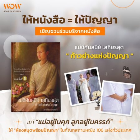 เชิญชวนผู้สนใจเข้าร่วมบริจาคในโครงการนี้ โดยสามารถสั่งซื้อหนังสือ “แม่ชีศันสนีย์ เสถียรสุต : ก้าวย่างแห่งปัญญา” ในราคาเล่มละ 450 บาท ที่บัญชี ห้างหุ้นส่วนจำกัด สำนักพิมพ์สามสี ธนาคารไทยพาณิชย์ สาขาถนนกาญจนาภิเษก (บางแวก) ออมทรัพย์ เลขบัญชี 131-205867-2 #หรือคลิก : https://m.me/wowwalkofwisdom ทุกการบริจาค 1 เล่ม โครงการสมทบเพิ่มเติมในจำนวนเท่ากัน