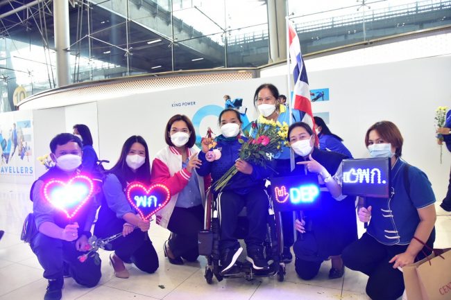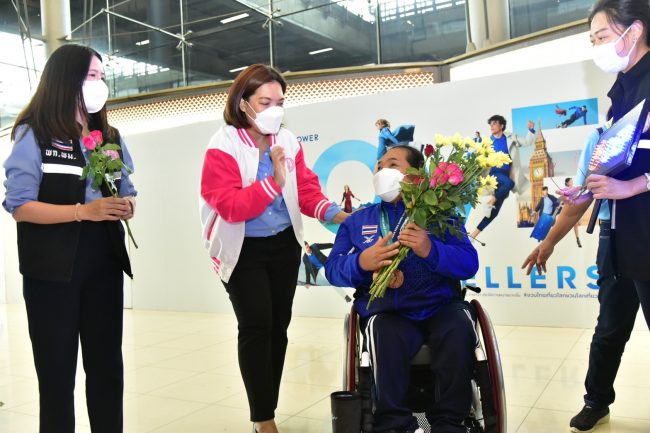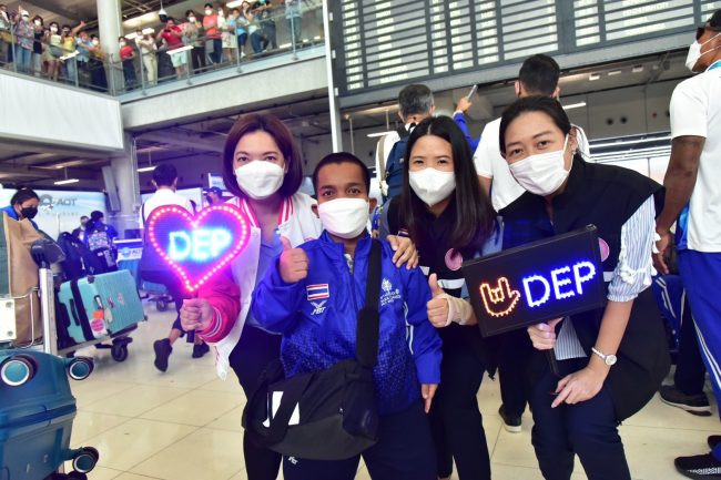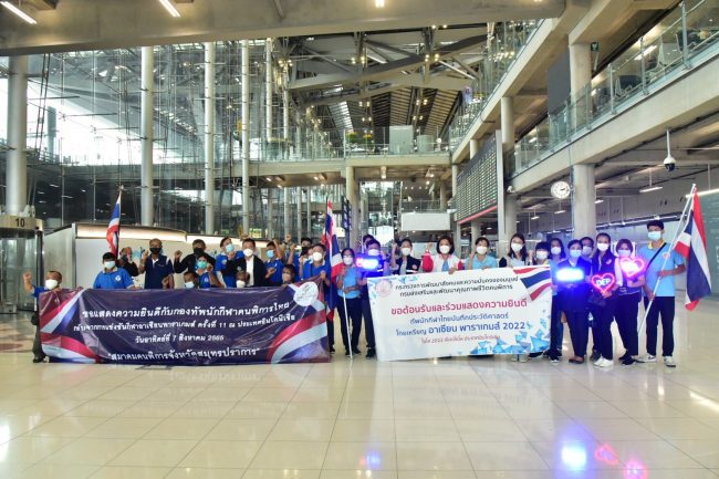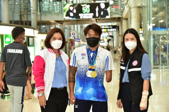 วันที่ (7 ส.ค. 65) เวลา 14.00 น. ที่ท่าอากาศยานสุวรรณภูมิ กระทรวงการพัฒนาสังคมและความมั่นคงของมนุษย์ (พม.) โดยกรมส่งเสริมและพัฒนาคุณภาพชีวิตคนพิการ (พก.) ร่วมต้อนรับและแสดงความยินดี กับคณะนักกีฬาจากการแข่งขันอาเซียนพาราเกมส์ ครั้งที่ 11 “โซโล 2022” ที่เมืองโซโล ประเทศอินโดนีเซีย ซึ่งจัดขึ้นระหว่างวันที่ 30 กรกฎาคม – 6 สิงหาคม 2565 โดยมีนางพรนิภา มาสิลีรังสี รองอธิบดีกรมส่งเสริมและพัฒนาคุณภาพชีวิตคนพิการ พร้อมด้วย นายชูเกียรติ สิงห์สูง นายกสมาคมกีฬาคนพิการแห่งประเทศไทย และคณะให้การต้อนรับ