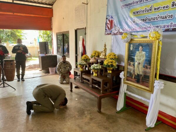 ทั้งนี้ กิจกรรมการอบรมครั้งนี้ มีระยะเวลา 3 วัน ตั้งแต่วันที่ 29 – 31 ส.ค.65 โดยมีวัตถุประสงค์เพื่อสร้างเครือข่ายในการช่วยเหลือเฝ้าระวังรักษาความปลอดภัย และ ปัญหายาเสพติดในพื้นที่อำเภอบ้านม่วง และ เพิ่มศักยภาพ ชรบ. เป็นกำลังสนับสนุนทางราชการ รวมทั้ง สามารถพึ่งพาตนเองในการแก้ปัญหายาเสพติดในหมู่บ้านได้ เพื่อควบคุมการแพร่ระบาดยาเสพติดและอาชญากรรม อันนำมาซึ่งความสงบปลอดภัยของชุมชน ก่อเกิดความรัก ความสมัครสมานสามัคคีของชุมชน และ ความภาคภูมิใจที่ได้ตอบแทนทำความดี พิทักษ์ ปกปักรักษาแผ่นดินเกิด