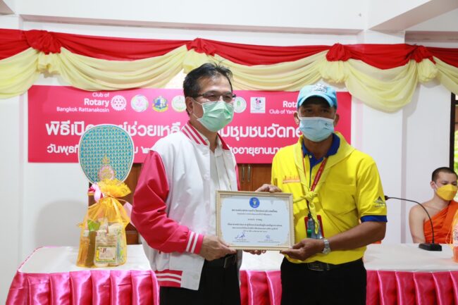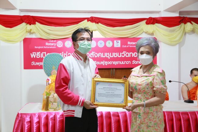 ทั้งนี้ มีผู้บริหารกระทรวง พม. ผู้แทนสำนักงานเขตยานนาวา กทม. และภาคีเครือข่าย ผู้นำชุมชนและชาวชุมชนวัดทองบน และอาสาสมัครพัฒนาสังคมและความมั่นคงของมนุษย์ (อพม.) ในพื้นที่ เข้าร่วมงาน นอกจากนี้ เป็นประธานในพิธีมอบประกาศเกียรติคุณให้แก่ 14 หน่วยงานช่วยเหลือสังคม และอาสาสมัครจิตอาสายานนาวา นายจรัล คำชมภู ผู้ช่วยเหลือผู้ประสบปัญหาทางสังคม กรณีหญิงชาวจีนจะกระโดดสะพานลอยฆ่าตัวตาย อีกทั้งมอบความช่วยเหลือต่างๆ ได้แก่ เงินสงเคราะห์ช่วยเหลือผู้ประสบปัญหาทางสังคม จำนวน 12 ราย รถเข็นช่วยเหลือผู้พิการทางการเคลื่อนไหวและถุงกำลังใจ จำนวน 2 ราย เงินส่งเสริมอาชีพ จำนวน 3 ราย จากสำนักงานธนานุเคราะห์ (สธค.) ถุงยังชีพผู้ประสบปัญหาทางสังคม จำนวน 70 ราย และแว่นสายตายาวช่วยเหลือผู้สูงอายุ จำนวน 75 ราย จากสโมสรโรตารีกรุงเทพรัตนโกสินทร์