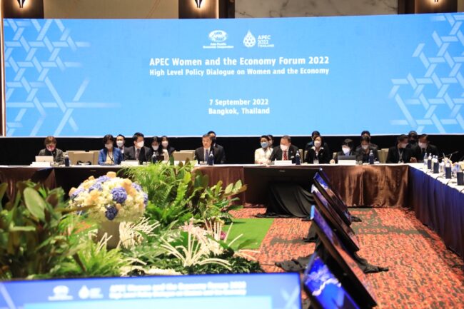 วันนี้ (7 ก.ย. 65) เวลา 09.00 น. นายจุติ ไกรฤกษ์ รัฐมนตรีว่าการกระทรวงการพัฒนาสังคมและความมั่นคงของมนุษย์ (รมว.พม.) เป็นประธานเปิดการประชุมระดับรัฐมนตรีด้านสตรีของเขตเศรษฐกิจเอเปค (APEC Women and Economy Forum) ภายใต้แนวคิด “Women’s Empowerment through the BCG Economy” การเสริมพลังสตรีในทางเศรษฐกิจผ่านแนวคิดเศรษฐกิจ BCG หรือ Bio – Circular – Green Economy ซึ่งกระทรวง พม. โดยกรมกิจการสตรีและสถาบันครอบครัว (สค.) เป็นเจ้าภาพจัดการประชุม ทั้งนี้ มีผู้เข้าร่วมประชุมระดับรัฐมนตรีจากกระทรวงหรือหน่วยงานด้านสตรีและเศรษฐกิจจากเขตเศรษฐกิจเอเปค และคณะผู้แทน ได้แก่ ออสเตรเลีย ปาปัวนิวกินี สิงคโปร์ และจีนไทเป เข้าร่วมประชุมแบบออนไซต์ ส่วนบรูไนดารุสซาลาม แคนาดา จีน อินโดนีเซีย เกาหลี มาเลเซีย เม็กซิโก เวียดนาม และรัฐเซีย เข้าร่วมประชุมรูปแบบออนไลน์  อีกทั้งชิลี ญี่ปุ่น นิวซีแลนด์ ฟิลิปปินส์ และสหรัฐอเมริกา เข้าร่วมประชุมแบบไฮบริด รวมถึงผู้นำระดับสูงของสำนักงานเลขาธิการเอเปค สภาที่ปรึกษาทางธุรกิจเอเปค Advisory Council – ABAC) และข้าราชการระดับสูงและภาคเอกชน รวมประมาณ 100 คน เข้าร่วมประชุม ณ True ICON Hall ชั้น 7 ศูนย์การค้าไอคอนสยาม กรุงเทพฯ