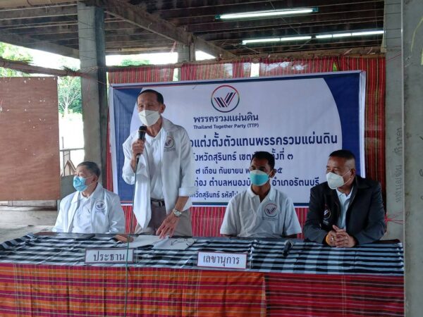 โดยมี พล.อ.วิชญ์ เทพหัสดิน ณ อยุธยา หัวหน้าพรรครวมแผ่นดิน พล.อ.สุรวัช บุตรวงษ์ รองหัวหน้าพรรครวมแผ่นดิน และแม่ใหญ่จิ๋ว ว่าที่ผู้สมัคร ส.ส.พรรครวมแผ่นดิน ต่างผลัดกันออกมาแนะนําตัวพร้อมแถลงชูนโยบายของทางพรรค จนได้รับเสียงตบมือจากชาวบ้านที่มาร่วมรับฟัง และทางพรรคพร้อมเป็นปากเป็นเสียงตัวแทนประชาชนในจังหวัดสุรินทร์ รับเรื่องราวร้องทุกข์ ปัญหาต่างๆของชาวบ้าน เพื่อนําเสนอผ่านรัฐบาลต่อไป
