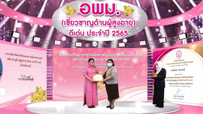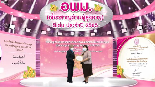 พม. โดยกรมกิจการผู้สูงอายุ เชิดชูเกียรติอาสาสมัครพัฒนาสังคมและความมั่นคงของมนุษย์ (เชี่ยวชาญด้านผู้สูงอายุ) ดีเด่น ประจำปี ๒๕๖๕ :