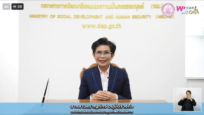 นางสาวสราญภัทร กล่าวว่า กระทรวงการพัฒนาสังคมและความมั่นคงของมนุษย์ (พม.) โดยกรมส่งเสริมและพัฒนาคุณภาพชีวิตคนพิการ (พก.) มีภารกิจหลักในการส่งเสริมและพัฒนาคุณภาพชีวิตคนพิการ เสริมสร้างความเข้มแข็งแก่องค์กรด้านคนพิการและเครือข่าย โดยเฉพาะอย่างยิ่ง ในส่วนของการดำเนินงานของกองทุนส่งเสริมและพัฒนาคุณภาพชีวิตคนพิการ ถือเป็นกลไกสำคัญในการขับเคลื่อนงานที่เป็นแหล่งเงินทุน ซึ่งให้การคุ้มครองและพัฒนาคุณภาพชีวิตคนพิการ ในด้านของการให้บริการกู้ยืมเงินเพื่อเป็นทุนประกอบอาชีพหรือขยายกิจการ โดยไม่มีดอกเบี้ย โดยในแต่ละปีมีคนพิการที่กู้ยืมเงินเพื่อประกอบอาชีพและประสบความสำเร็จเป็นจำนวนมาก นอกจากนี้ การส่งเสริมการจ้างงานคนพิการในสถานประกอบการ ตามมาตรา 33 คนพิการสามารถทำงานและประสบความสำเร็จ มีงานทำ มีอาชีพ มีรายได้ และมีคุณภาพชีวิตที่ดีได้ ซึ่ง กระทรวง พม. โดยพก. ได้เล็งเห็นถึงความสำคัญในศักยภาพและความสามารถของคนพิการ จึงได้จัดทำ