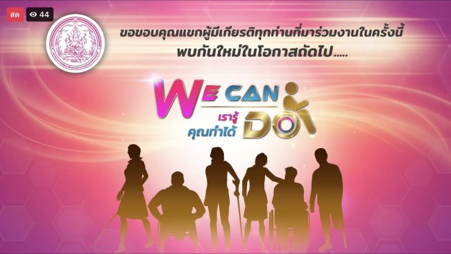 วันที่ (14 ก.ย. 65) เวลา 13.00 น. ที่ ห้องประชุมชั้น 3 อาคาร 60 ปี กรมประชาสงเคราะห์ กรุงเทพฯ นางสาวสราญภัทร อนุมัติราชกิจ อธิบดีกรมส่งเสริมและพัฒนาคุณภาพชีวิตคนพิการ เป็นประธานในพิธีเปิดและพิธีประกาศเกียรติคุณคนพิการที่ประสบความสำเร็จด้านการกู้ยืมเงิน เพื่อประกอบอาชีพและด้านการจ้างงานในสถานประกอบการโครงการ WE CAN DO “เรารู้ คุณทำได้” ประจำปี 2565 (รูปแบบ Virtual Event ถ่ายทอดสดผ่านระบบออนไลน์) โดยมี พัฒนาสังคมและความมั่นคงของมนุษย์จังหวัด ผู้แทนหน่วยงาน องค์กรด้านคนพิการ สื่อมวลชน และหน่วยงานที่เกี่ยวข้อง เข้าร่วมงาน