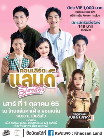 คอนเสิร์ต “แลนต์มิตติ้ง” จะจัดขึ้นในวันเสาร์ที่ 1 ตุลาคมนี้ ณ ร้านแจ่มคาเฟ่ จ.ขอนแก่น เวลา 19.00 น. เป็นต้นไป ย้ำว่าคอนเสิร์ตนี้ใครก็ดูได้ แต่ถ้าอยากติดขอบเวทีโซน VIP ขอแค่คุณพร้อมบ้านแลนด์ก็จัดให้ ใครสนใจเข้าไปดูข้อมูลหรือสอบถามรายละเอียดได้ทางเพจ “Khaosan Land” (https://m.facebook.com/khaosanland/) รับรอง #ฟินเด้อ แน่นอนจ้าาาา #แลนด์มิตติ้ง #ข้าวสารแลนด์ #khaosanland #แม็ควัชรพล #ไอออนข้าวสารแลนด์ #ณัฐสุรศักดิ์ #เฟื่องฟ้าวราพร #ก๊อตจิรพัฒน์ #เบลล์นิภาดา #ฟินเด้อ