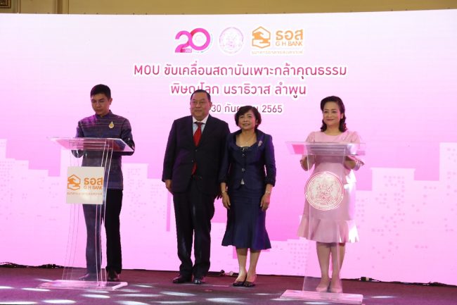 วันที่ (30 ก.ย. 65) เวลา 10.30 น. นายจุติ ไกรฤกษ์ รัฐมนตรีว่าการกระทรวงการพัฒนาสังคมและความมั่นคงของมนุษย์ (รมว.พม.) เป็นประธานในพิธีลงนามบันทึกข้อตกลงความร่วมมือ “การสนับสนุนการขับเคลื่อนสถาบันเพาะกล้าคุณธรรม เพื่อการพัฒนาเด็กและเยาวชนในพื้นที่จังหวัดพิษณุโลก จังหวัดลำพูน และจังหวัดนราธิวาส” ระหว่าง กระทรวงการพัฒนาสังคมและความมั่นคงของมนุษย์ (พม.) โดยกรมกิจการเด็กและเยาวชน (ดย.) กับ ธนาคารอาคารสงเคราะห์ (ธอส.) โดยมีนางจตุพร โรจนพานิช อธิบดีกรมกิจการเด็กและเยาวชน และนายฉัตรชัย ศิริไล กรรมการผู้จัดการธนาคารอาคารสงเคราะห์ ร่วมลงนาม อีกทั้ง นางพัชรี อาระยะกุล ปลัดกระทรวงการพัฒนาสังคมและความมั่นคงของมนุษย์ (ปลัด พม.) ร่วมเป็นสักขีพยาน และคณะผู้บริหารกระทรวง พม. เข้าร่วมงาน ณ ห้องประชุมชั้น 2 กระทรวง พม. สะพานขาว ถนนกรุงเกษม กรุงเทพฯ