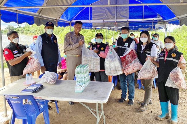 สำหรับภารกิจของศูนย์นครราชสีมา น.สพ.จตุรงค์ โยธารักษ์ รองกรรมการผู้จัดการอาวุโส ซีพีเอฟ นำชาวซีพีเอฟจิตอาสาธุรกิจสุกรภาคอีสาน ส่งมอบผลิตภัณฑ์ช่วยเหลือผู้ประสบภัยน้ำท่วม อ.ชุมพวง จ.นครราชสีมา ได้แก่ เนื้อสุกร 200 กิโลกรัม ไข่ไก่ซีพี 3,000 ฟอง น้ำดื่ม พร้อมทั้งอาหารพร้อมรับประทาน 300 กล่อง ที่ชาวซีพีเอฟศูนย์นครราชสีมา ร่วมใจปรุงอาหารเพื่อมอบแก่ผู้ประสบภัยใน อ.ชุมพวง ซึ่งมีผู้ได้รับความเดือดร้อน จำนวน 712 ครัวเรือน ประชาชน 2,500 คน โดยมี นายทรงพล แก้วพรประเสริฐ นายกเทศมนตรีตำบลชุมพวง เป็นผู้รับมอบ พร้อมกล่าวขอบคุณซีพีเอฟ และเหล่าพนักงานที่ส่งความห่วงใยและเร่งช่วยเหลือประชาชนชาวชุมพวงในครั้งนี้