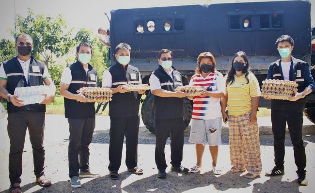 ส่วนศูนย์ศรีสะเกษ นายสำรวจ เกษกุล รองผู้ว่าราชการจังหวัดศรีสะเกษ รักษาการผู้ว่าราชการจังหวัดศรีสะเกษ พร้อมด้วย นายศราวุธ ทรงโฉม นายอำเภออุทุมพรพิสัย และ นายสัตวแพทย์ นัทธ์เวโรจน์ บูชาพัฒน์ ปศุสัตว์จังหวัดศรีสะเกษ นำหน่วยงานปกครองส่วนท้องถิ่นในเขตตำบลขะยูง ร่วมรับมอบเนื้อสุกรแปรรูป 300 กิโลกรัม เนื้อไก่ 100 กิโลกรัม และใข่ไก่สดซีพี 1,500 ฟอง เพื่อส่งมอบแก่ชาวชุมชน โดยมี นายเอราวัณ ก้อนคำใหญ่ และ นายเกรียงไกร ยะถา ผู้ช่วยกรรมการผู้จัดการ ธุรกิจสุกร ซีพีเอฟ นำจิตอาสาจากธุรกิจสุกรภาคอีสานล่าง ร่วมส่งมอบ