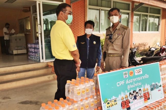 นับตั้งแต่ประเทศไทยประสบปัญหาน้ำท่วม ซีพีเอฟได้ร่วมร้อยเรียงใจช่วยเหลือประชาชนอย่างถึงที่สุดใน 24 จังหวัดทั่วประเทศ ทั้งพื้นที่ ชลบุรี ระยอง ฉะเชิงเทรา ปราจีนบุรี นครนายก ขอนแก่น อุบลราชธานี ศรีสะเกษ ยโสธร นครราชสีมา มหาสารคาม เลย เชียงใหม่ สุโขทัย เพชรบูรณ์ นครสวรรค์ อุทัยธานี พิจิตร พิษณุโลก สระบุรี ลพบุรี พระนครศรีอยุธยา สิงห์บุรี และกรุงเทพฯ ในเขตบางนาและมีนบุรี โดยบริษัทยังคงดำเนินการต่อเนื่องจนกว่าสถานการณ์จะคลี่คลาย./