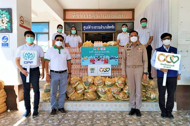 ทางด้านโรงงานแปรรูปเนื้อไก่ จังหวัดนครราชสีมา นายจิตตุรงค์ พงศ์ประยูร ผู้ช่วยกรรมการผู้จัดการ สำนักธุรการภาคอีสาน นำพนักงานผู้มีใจอาสาร่วมกันมอบถุงยังชีพ100 ชุด และน้ำดื่มซีพี 2,400 ขวด แก่ นายธรรมธรรศ ทองสำโรง นายอำเภอโชคชัย พร้อมลงพื้นที่มอบถุงยังชีพให้แก่ประชาชนที่ประสบภัยน้ำท่วม ในพื้นที่อำเภอโชคชัย เพื่อส่งกำลังใจให้ทุกคนก้าวผ่านวิกฤติไปด้วยกัน พร้อมกันนี้ทีมงานยังเดินสายไปมอบถุงยังชีพอีก 50 ชุด และน้ำดื่มซีพี 1,200 ขวด แก่ นายธวัชชัย คำด้วง สมาชิกสภาเทศบาลตำบลเมืองยาง อำเภอเมืองยาง เพื่อนำไปช่วยเหลือพี่น้องประชาชนชาวตำบลเมืองยางได้คลายความกังวลด้านอาหาร