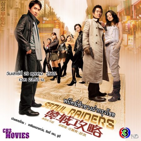 ช่วงเวลา 23.55 น. พบกับ “แชนแนลทรีมูฟวี่ส์” นำเสนอภาพยนตร์ “พยัคฆ์สำอางผ่ากรุงโซล (Seoul Raiders)” นำแสดงโดย : เหลียงเฉาเหว่ย, ริชชี่ เรน, ซูฉี เรื่องราวของ แลม สายสืบนักล่าที่ชอบสวมเสื้อโค้ชอย่างมีเอกลักษณ์ เขามักจะเต้นรำไปในจังหวะวอลท์ซ เมื่อได้รับมอบหมายงานที่ไม่ธรรมดาต้องฝ่าฟันอันตราย จากคดีตามแกะรอยแท่นผลิตเงินดอลลาร์ปลอม ในที่สุดแลมก็ได้พบกับคู่แข่งอย่างโอเว่น โอเว่นเป็นผู้ตรวจสอบแท่นพิมพ์และนำแท่นพิมพ์หนีไปยังไต้หวัน แลมตามโอเว่นไปและได้ว่าจ้างกลุ่มสาวสวยมาเป็นผู้ช่วย นั่นทำให้เขาได้พบกับเจเจ แมวขโมยสาว เธอยื่นข้อเสนอจะช่วยตามแท่นพิมพ์กลับคืนมาแต่ต้องได้รับส่วนแบ่งครึ่งหนึ่ง ในที่สุดแลมก็ได้แท่นพิมพ์กลับคืนมา แต่เจเจได้หักหลังเขาและนำมันไปขายให้กับโพล่า แบร์ ขณะเดียวกันฐานะที่แท้จริงของโอเว่นและโพล่า แบร์ ก็ถูกเปิดเผยแต่สถานการณ์ก็กลับมาหน้าสิ่วหน้าขวานเมื่อเจเจถูกลักพาตัวไป