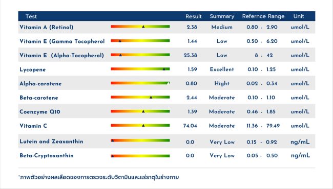 - การตรวจวัดระดับวิตามิน แร่ธาตุ และสารต้านอนุมูลอิสระ