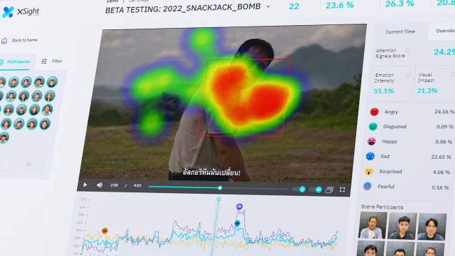 o Emotion Intensity Score – การดูค่าเฉลี่ยอารมณ์ร่วมของผู้ชมที่เกิดขึ้นระหว่างรับชมโฆษณา เพื่อระบุช่วงเวลาที่ซีนโฆษณาทำงานกับอารมณ์ของคนมากที่สุด (Top Emotion Intensity Scene)