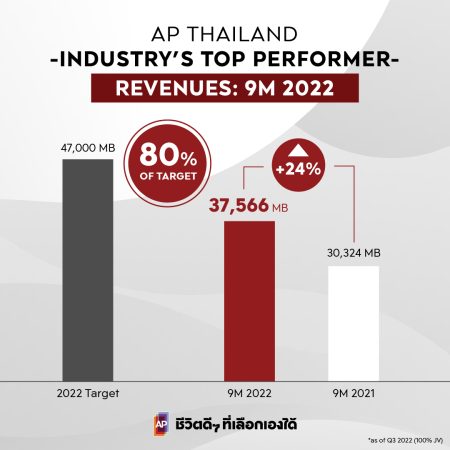 เอพี ไทยแลนด์ ทุบสถิติเติบโตอย่างแข็งแกร่ง โชว์รายได้รวม 9 เดือนนิวไฮกว่า 37,560 ล้านบาท กำไรโตทะลุ 4,720 ล้านบาท :