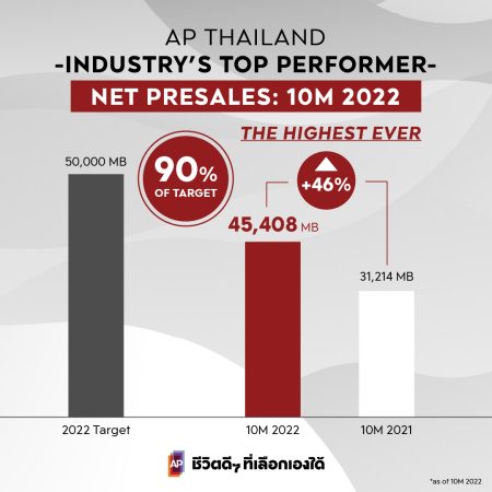 - เอพี ไทยแลนด์ ภายใต้คำมั่นสัญญา “ชีวิตดีๆ ที่เลือกเองได้” เปิดตัวเลขย้ำผู้นำตัวจริงในอุตสาหกรรม เติบโตอย่างแข็งแกร่งทุกสถานการณ์