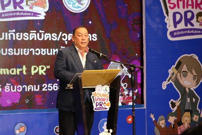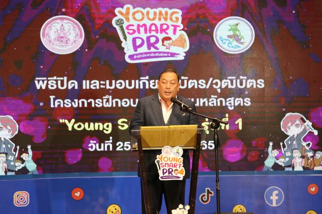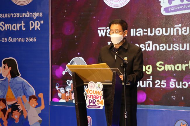 วันที่ (25 ธ.ค. 65) 09.30 น. นายจุติ ไกรฤกษ์ รัฐมนตรีว่าการกระทรวงการพัฒนาสังคมและความมั่นคงของมนุษย์ (รมว.พม.) เป็นประธานในพิธีปิดโครงการ Young Smart PR พร้อมทั้งมอบเกียรติบัตร วุฒิบัตรให้แก่เยาวชนผู้ผ่านการอบรม ได้แก่ นักเรียนระดับมัธยมศึกษาตอนปลาย นักศึกษาระดับอาชีวศึกษาและอุดมศึกษา จำนวน 31 คน จาก 12 สถาบันการศึกษาในพื้นที่จังหวัดพิษณุโลก โดยมี พลโท สรรเสริญ แก้วกำเนิด อธิบดีกรมประชาสัมพันธ์ กล่าวรายงาน อีกทั้งได้ร่วมพูดคุยกับผู้แทนเยาวชนที่ร่วมโครงการฯ ในรายการ คิดส์ดี ซึ่งจะออกอากาศทาง สถานีโทรทัศน์ NBT North ณ สถานีวิทยุโทรทัศน์แห่งประเทศไทยจังหวัดพิษณุโลก อำเภอเมือง จังหวัดพิษณุโลก
