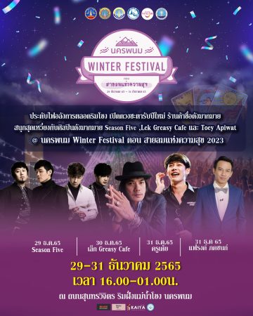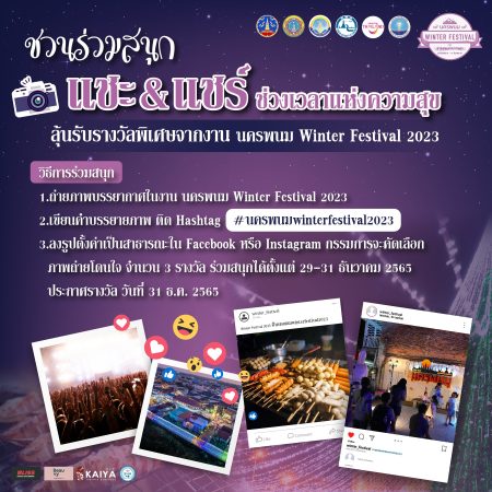 ติดตามและสอบถามข้อมูลกิจกรรมเพิ่มเติมได้ที่ Facebook : นครพนม Winter Festival 2023 ตอน สายลมแห่งความสุข
