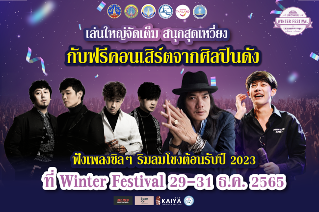 เทศกาลแห่งความสุขกับจังหวัดนครพนม “NAKHOM PHANOM WINTER FESTIVAL 2023 ตอนสายลมแห่งความสุข” ในครั้งนี้มากับความชิลริมแม่น้ำโขงกับบรรยากาศเย็นของสายลมแห่งความสุข ระหว่าง วันที่ 29 – 30 ธันวาคม 2565 เวลา 16.00 – 23.00น. และ วันที่ 31 ธันวาคม 2565 เวลา 16.00 – 01.00 น. ณ เวทีหอนาฬิกาเวียดนามอนุสรณ์ ถนนสุนทรวิจิตร ริมฝั่งแม่น้ำโขง อำเภอเมือง จังหวัดนครพนม