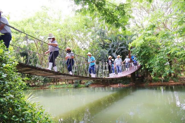 “การพลิกผืนดินในฟาร์มสุกรให้เป็นพื้นที่ป่านิเวศ พัฒนาเป็นศูนย์เรียนรู้สวนป่ารักษ์นิเวศ โครงการหมู่บ้านเกษตรกรรมกำแพงเพชร และต่อยอดสู่เกษตรกรในโครงการฯ รวมทั้งสร้างภาคีเครือข่ายกับสถานศึกษาในจังหวัดกำแพงเพชร ซึ่งตลอด 9 ปี ได้เปิดให้ชุมชน นักเรียน นักศึกษา และประชาชนที่สนใจ เข้ามาดูงานกว่า 4,500 คน และในปี 2566 ตั้งเป้าพัฒนาพื้นที่ป่าระยะที่สองอีก 18 ไร่ ในรูปแบบป่าพึ่งพาป่า เป็นป่าเศรษฐกิจที่สามารถสร้างรายได้ให้กับชุมชน และดึงการมีส่วนร่วมของเยาวชนในพื้นที่ ปลูกฝังความตระหนักในการร่วมปลูกต้นไม้ เรียนรู้การเป็นมัคคุเทศก์ที่สามารถเป็นผู้ให้ข้อมูลเกี่ยวกับสวนป่าให้กับผู้ที่สนใจเข้าเยี่ยมชมโครงการฯ” นายสมพร กล่าว