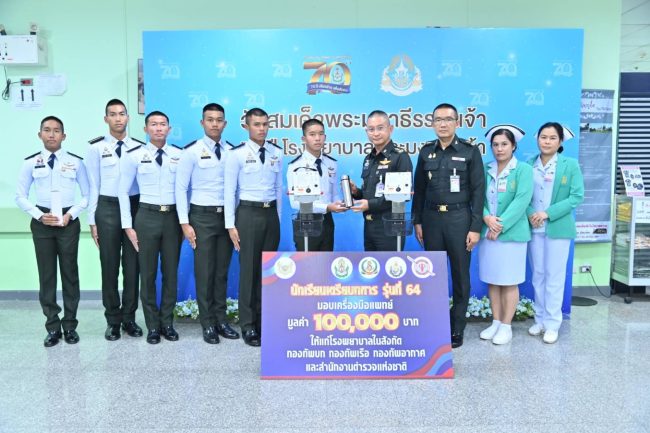 นักเรียนเตรียมทหารรุ่น 64 ทั้ง 4 เหล่าทัพ นำเงินรายได้จากการจัดกิจกรรมแข่งขันโบว์ลิ่งการกุศล มอให้กับโรงพยาบาลฯ :