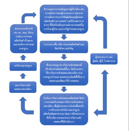 “…จุดเริ่มต้นในการพัฒนาผลงานการเพิ่มขีดความสามารถในการพัฒนาอุตสาหกรรมการแพทย์ให้เป็นศูนย์กลางการแพทย์และสุขภาพนานาชาติของ วว. เป็นผลจากความเชี่ยวชาญด้านการวิเคราะห์ทดสอบเพื่อพัฒนาผลิตภัณฑ์และบรรจุภัณฑ์ให้ตรงตามความต้องการของท้องตลาดและมีคุณภาพตามมาตรฐานกำหนด ปัจจุบัน วว. พบปัญหาของผู้ประกอบการในเรื่องต้นทุนค่าใช้จ่ายด้านผลิตภัณฑ์ทางการแพทย์ ซึ่งประเทศไทยมีทั้งที่ผลิตได้เองและนำเข้าผลิตภัณฑ์จากต่างประเทศ  โดยปัญหาของผลิตภัณฑ์คือ ต้องผ่านการวิเคราะห์ทดสอบเพื่อให้ได้คุณภาพ เป็นไปตามมาตรฐานและครอบคลุมด้านความปลอดภัย หากทดสอบได้เองในประเทศ โดยไม่ต้องส่งออกไปทดสอบต่างประเทศ จะช่วยลดต้นทุนได้มากถึง 40.3 ล้านบาท หรือคิดเป็นร้อยละ 80.6  ซึ่ง วว. พร้อมตอบโจทย์ด้วยความรู้ความสามารถด้านการวิเคราะห์/ทดสอบ/สอบเทียบ ชิ้นส่วนอุปกรณ์บรรจุภัณฑ์ทางการแพทย์และมาตรฐานที่เกี่ยวข้อง มีห้องปฏิบัติการที่ได้รับรับรอง ISO/IEC 17025 พร้อมทั้งเครื่องมือที่ทันสมัย  ให้ผลการวิเคราะห์/ทดสอบถูกต้องแม่นยำ  พร้อมให้บริการผ่านระบบดิจิทัล  ที่สามารถรวบรวมฐานข้อมูลลูกค้า/ผู้ประกอบการ นอกจากนั้นลูกค้ายังสามารถตรวจสอบสถานะการให้บริการได้ผ่านแพลตฟอร์ม วว. JUMP …” ผู้ว่าการ  วว. กล่าว