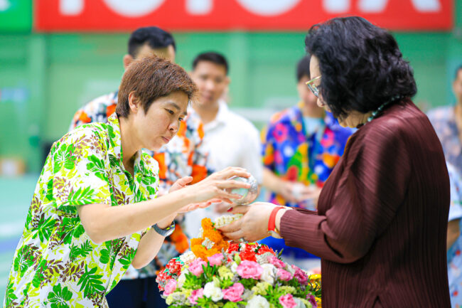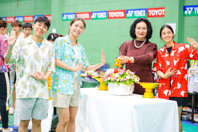 เมื่อช่วงเที่ยงของวันอังคารที่ 16 เม.ย.67 ที่ผ่านมา นักกีฬาแบดมินตันทีมชาติไทย และผู้ฝึกสอน นำโดย “กิ๊ฟ” จงกลพรรณ กิติธรากุล และ “วิว” รวินดา ประจงใจ , “อันนา” นันทน์กาญจน์ กับ “มูนา” เบญญาภา เอี่ยมสอาด , “เม” ศุภนิดา เกตุทอง รวมถึงทีมงานโค้ชอย่าง “โค้ชส้ม” สราลีย์ ทุ่งทองคำ , โค้ชคิม จีฮุน รวมไปถึงกรรมการบริการสมาคมฯ ได้ทำกิจกรรมร่วมสืบสานประเพณีไทยด้วยการเข้ารดน้ำขอพร คุณหญิงปัทมา ลีสวัสดิ์ตระกูล รองประธานสหพันธ์แบดมินตันโลก และ นายกสมาคมกีฬาแบดมินตันแห่งประเทศไทย เนื่องในโอกาสเทศกาลสงกรานต์ ปีใหม่ไทย ประจำปี 2567 ที่สมาคมกีฬาแบดมินตันแห่งประเทศไทย สวนลุมพินี ท่ามกลางบรรยากาศที่เรียบง่าย และอบอุ่น