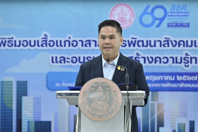 วันที่ 17 พ.ค. 67 นายวราวุธ ศิลปอาชา รัฐมนตรีว่าการกระทรวงการพัฒนาสังคมและความมั่นคงของมนุษย์ (รมว.พม.) เป็นประธานพิธีมอบเสื้อแก่อาสาสมัครพัฒนาสังคมและความมั่นคงของมนุษย์ และอบรมเสริมสร้างความรู้ทางการเงิน โดยมีนายอนุกูล ปีดแก้ว ปลัดกระทรวงการพัฒนาสังคมและความมั่นคงของมนุษย์ (ปลัด พม.) กล่าวรายงาน พร้อมด้วยคณะผู้บริหารกระทรวง พม. และผู้แทนอาสาสมัครพัฒนาสังคมและความมั่นคงของมนุษย์ (อพม.) ทั้ง 50 เขตในกรุงเทพมหานคร เข้าร่วม ณ ห้องประชุมประชาบดี ชั้น 19 กระทรวงการพัฒนาสังคมและความมั่นคงของมนุษย์ สะพานขาว กทม.