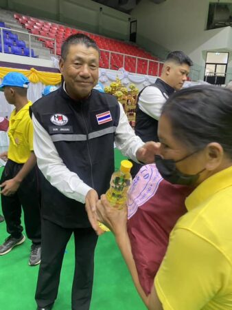 โดยมีร้อยตำรวจโท ดร.มนัส โนนุช ประธานมูลนิธิ มิราเคิล ออฟไลฟ์ และประธานสภาสังคมสงเคราะห์ แห่งประเทศไทย ในพระบรมราชูปถัมภ์ เป็นประธานในพิธี นายณัชวันท์ อัลภาชน์เตชะสาน รองผู้ว่าราชการราชบุรี สมาคมคนพิการผู้ค้าสลาก (ประเทศไทย) รวมทั้งข้าราชการทุกหน่วยจังหวัดลพบุรี ร่วมมอบถุงยังชีพให้กับประชาชนในพื้นที่ที่ได้รับความเดือดร้อนและผู้ป่วยติดเตียงในพื้นที่ ณ โรงยิมเนเซี่ยม ตำบลหน้าเมือง อำเภอเมือง จังหวัดราชบุรี