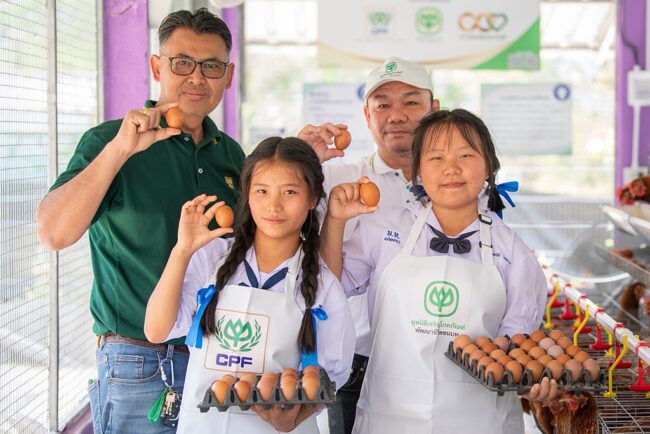 มูลนิธิเจริญโภคภัณฑ์พัฒนาชีวิตชนบท (ซีพี) ร่วมกับซีพีเอฟ ตอกย้ำความมุ่งมั่นในการพัฒนาโภชนาการที่ดีแก่นักเรียนในพื้นที่ชนบทห่างไกล โดยน้อมนำแนวพระราชดำริ ของ สมเด็จพระกนิษฐาธิราชเจ้า กรมสมเด็จพระเทพรัตนราชสุดา ฯ สยามบรมราชกุมารีตาม “โครงการเกษตรเพื่ออาหารกลางวัน” ดำเนิน “โครงการเลี้ยงไก่ไข่เพื่ออาหารกลางวันนักเรียน” โดยมุ่งให้นักเรียนได้บริโภคไข่ไก่อย่างต่อเนื่อง สามารถเติบโตสมวัยทั้งด้านร่างกายและสติปัญญา ให้นักเรียนมีสุขภาพที่แข็งแรง