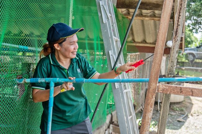 พรทิพย์ ธนะประสพ ผู้ชำนาญการงานธุรการและความยั่งยืน ภาคกลางตะวันออก ซีพีเอฟ หนึ่งในพนักงาน “ซีพีอาสา” ที่ร่วมกิจกรรมบอกว่า รู้สึกดีใจและยินดีที่ได้เป็นส่วนหนึ่งในการพัฒนาโครงการดีๆ ที่ช่วยเหลือเด็กๆ และเยาวชนในพื้นที่ห่างไกล วันนี้มีพนักงานมาช่วยกันทำความสะอาดโรงเรือนเลี้ยงไก่ เพื่อให้นักเรียนมีสุขอนามัยที่ดี มีไข่ที่สดสะอาดและปลอดภัยไว้บริโภค เพื่อให้พวกเขาเติบโตอย่างแข็งแรง สมวัย และเป็นกำลังสำคัญในการขับเคลื่อนประเทศชาติในอนาคต