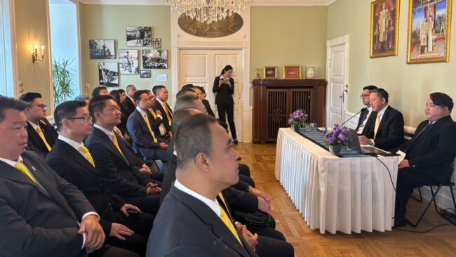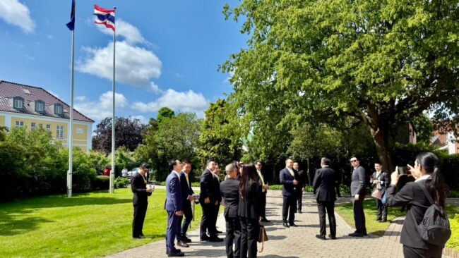 ซึ่งการเดินทางเยือน เดนมาร์ก เริ่มต้นที่ สถานเอกอัครราชทูตไทย ณ กรุงโคเปนเฮเกน โดยได้รับเกียรติจาก นายภูวิศ วิสารทสกุล อุปทูต ให้การต้อนรับและบรรยายสรุปพิเศษในหัวข้อ “ความสัมพันธ์ระหว่างประเทศ สถานการณ์การเมือง–เศรษฐกิจระหว่างไทยกับเดนมาร์ก” ซึ่งสะท้อนถึงความร่วมมือที่มีมายาวนานกว่า 400 ปี