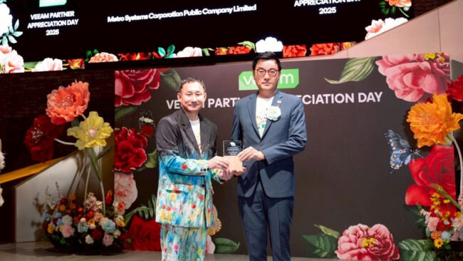 บริษัท เมโทรซิสเต็มส์คอร์ปอเรชั่น จำกัด (มหาชน) หรือ MSC ผู้นำในธุรกิจเทคโนโลยีสารสนเทศครบวงจร คว้า 2 รางวัลใหญ่ จาก วีม ซอฟต์แวร์ ได้แก่ รางวัล “Veeam Value-Added Reseller Platinum Level” และ “Strategic Product Veeam Data Cloud for Microsoft 365” โดย คุณชัยวัฒน์ ลิขิตจรรยากุล รองกรรมการผู้จัดการกลุ่มธุรกิจซอฟต์แวร์โซลูชั่น และ คุณอาทิตย์ แตงตาด รองกรรมการผู้จัดการกลุ่มธุรกิจซอฟต์แวร์โซลูชั่น บริษัท เมโทรซิสเต็มส์คอร์ปอเรชั่น จำกัด (มหาชน) รับมอบรางวัลจาก Macro Zhang Vice President, APJ Channel Strategy & Management และ คุณเจษฎา ภาสวรวิทย์ Senior Country Director, Thailand บริษัท วีม ซอฟต์แวร์ จำกัด ในงาน “Veeam Partner Appreciation Day 2025” จัดภายใต้ Theme flower in the garden เมื่อวันที่ 27 พฤษภาคม 2568 ณ Chang Canvas One Bangkok