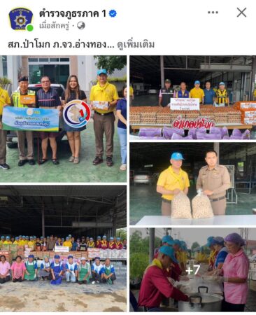 1.) สภ.ป่าโมก ภ.จว.อ่างทอง “มอบวัตถุดิบเพื่อประกอบเลี้ยง ณ ครัวชุมชนป่าโมก และสิ่งของช่วยเหลือผู้ประสบอุทกภัย จำนวน 900 กล่อง”