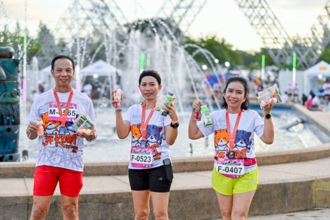 บรรยากาศภายในงานเปี่ยมไปด้วยพลังแห่งความสุขและความสามัคคี นักวิ่งและกองเชียร์ร่วมสร้างสีสันแห่งรอยยิ้ม พร้อมเพลิดเพลินกับอาหารและเครื่องดื่มสุขภาพจากแบรนด์ในเครือซีพีเอฟ อาทิ ไข่ต้มพร้อมทาน ไส้กรอก ไก่ปรุงสุก CP หมูบดชีวาผสมไข่ผำ ไก่จ๊อห้าดาว นมเมจิ และขนมปัง รวมถึง Jerhigh & Jinny ที่มอบความสุขให้ทั้งนักวิ่งและเพื่อนสี่ขาอย่างอบอุ่น