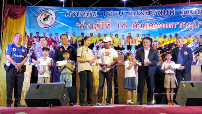 เมื่อวันที่ 12 ธ.ค. 68 หนังสือพิมพ์ คู่แผ่นดิน จัดงานครบรอบ 15 ปี หนังสือพิมพ์คู่แผ่นดิน ก้าวสู่ปีที่ 16 อย่างภาคภูมิใจ โดยมีการจัดแข่งขันฟุตบอลดารา & สื่อมวลชน เวลา 13.00 น. – 17.00 น. ณ สนามฟุตบอลวิทยาลัยเทคนิคกาญจนาภิเษกอุดรธานี ชิงถ้วยเกียรติยศ รางวัลชนะเลิศ นายราชันย์ ซุ้นหั้ว ผู้ว่าราชการจังหวัดอุดรธานี รางวัลชนะเลิศอันดับ 1 นายศราวุธ เพชรพนมพร นายกองค์การบริหารส่วนจังหวัดอุดรธานี รางวัลชนะเลิศอันดับ 2 นายสราวุธ นามสีลี นายอำเภอประจักษ์ศิลปาคม และรางวัลชนะเลิศอันดับ 3 ดร.พงษ์สวัสดิ์ พิมพิไสย ผู้อำนวยการวิทยาลัยเทคนิคกาญจนาภิเษกอุดรธานี