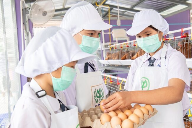 โดยมีซีพีเอฟนำความเชี่ยวชาญของบริษัทฯมาใช้ถ่ายทอดความรู้ประสบการณ์ การปรับใช้เทคโนโลยีต่างๆ ให้กับนักเรียนและคุณครูในโรงเรียน พร้อมสนับสนุนโรงเรือน-อุปกรณ์มาตรฐาน แม่พันธุ์ไก่ไข่ และอาหารไก่ในการเลี้ยงรุ่นแรก พร้อมส่งนักสัตวบาลให้คำแนะนำและติดตามการเลี้ยงตลอดโครงการอย่างต่อเนื่อง