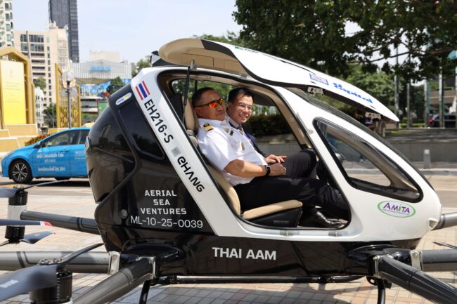 ในปีเดียวกัน CAAT ได้ดำเนินการอนุญาตและกำกับดูแลการทดสอบทดลองบินอากาศยานไฟฟ้าขึ้นลงทางดิ่ง (eVTOL) ภายใต้กรอบการกำกับดูแลที่มีความปลอดภัยสูง ถือเป็นก้าวสำคัญในการเตรียมความพร้อมด้านกฎหมาย มาตรฐาน และแนวปฏิบัติ สำหรับการนำเทคโนโลยี Advanced Air Mobility (AAM) มาใช้ในประเทศไทยอย่างเป็นรูปธรรม